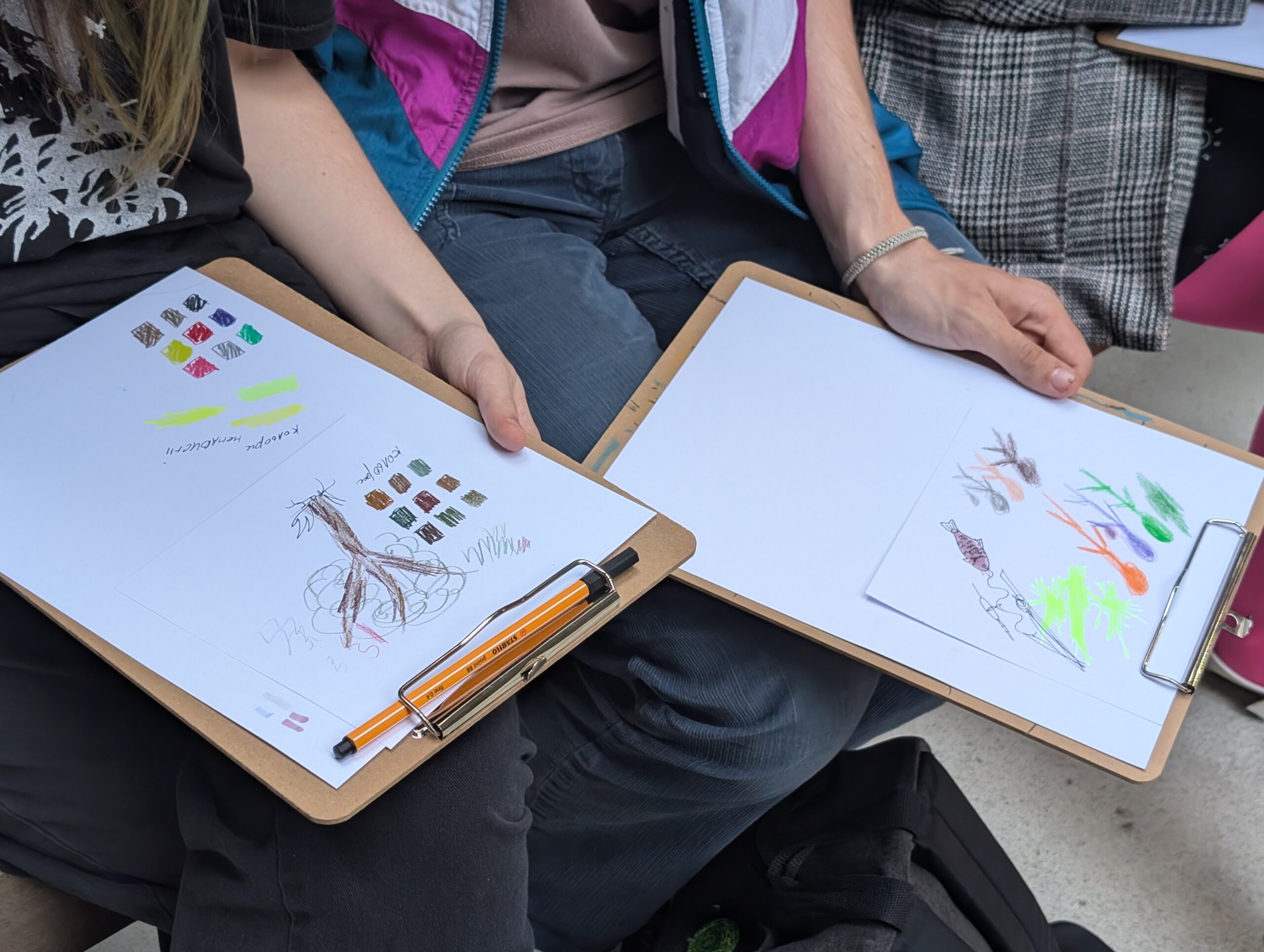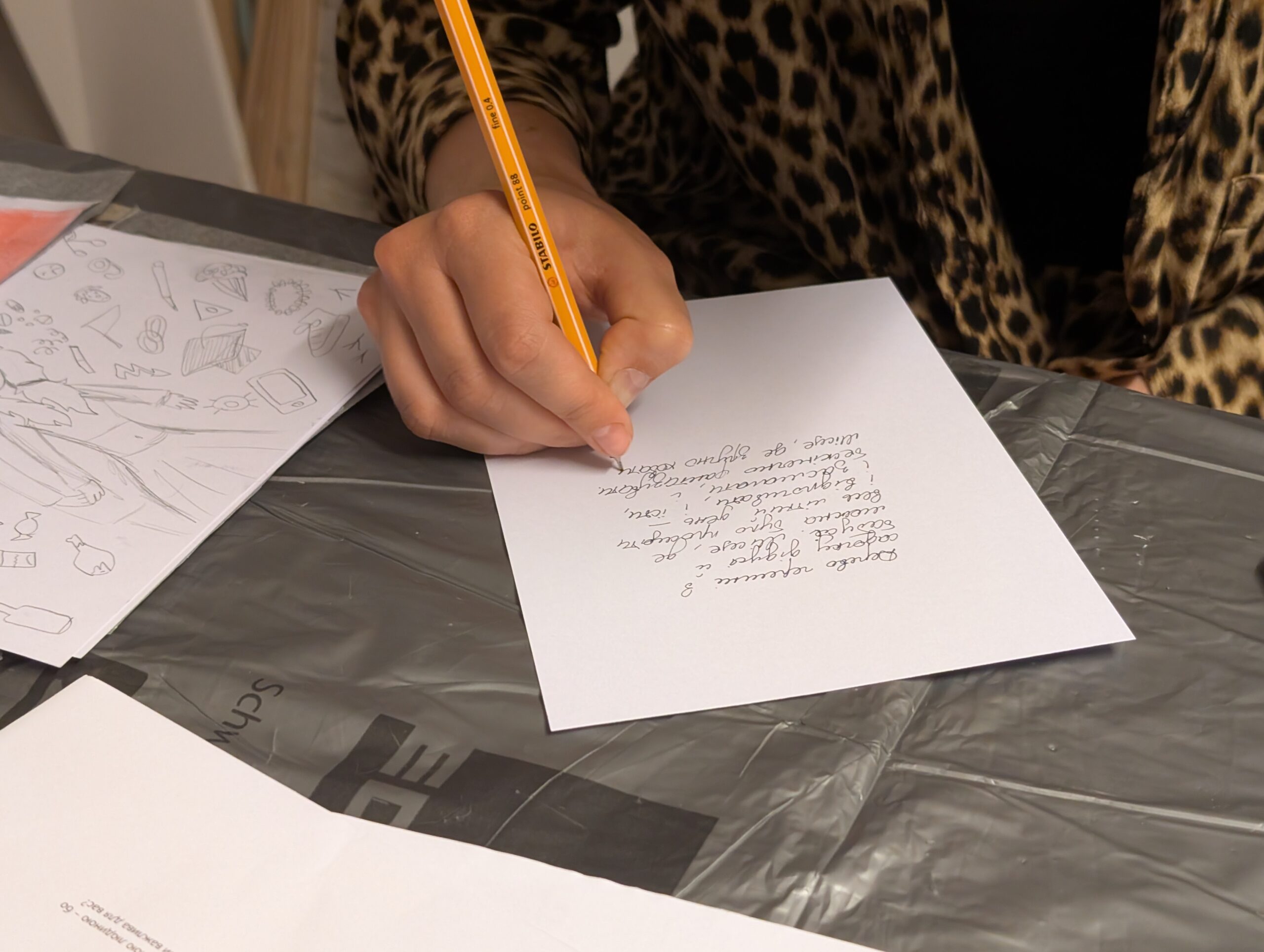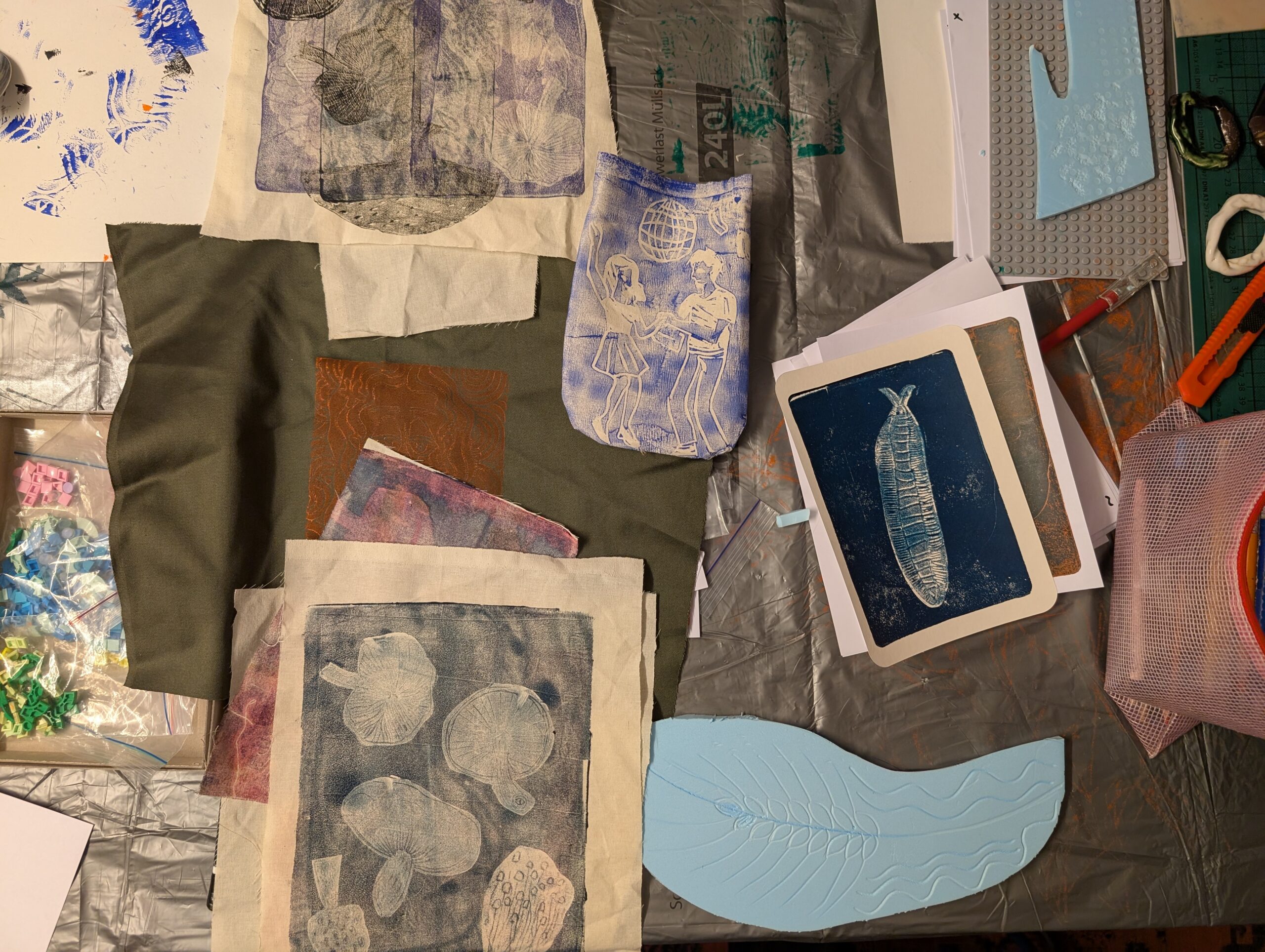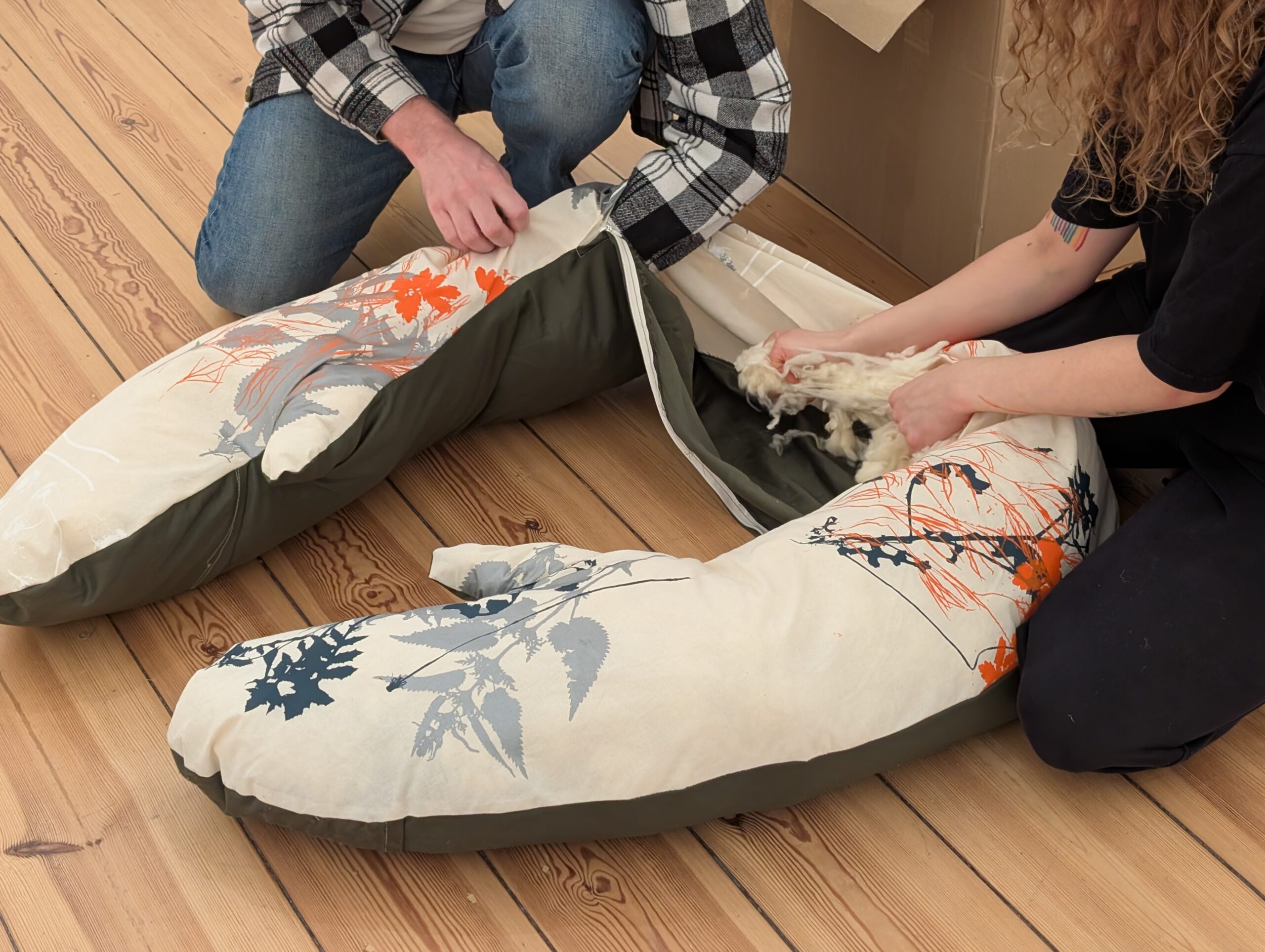 Der Companion sammelt Geschichten der Fürsorge. An der Außenseite des Raumes sind gemeinsam bedruckte und genähte Taschen angebracht, zusammen mit textilen Applikationen von Herz, Magen und Niere. Sie zeigen, wo diese Geschichten entstehen und wie sie im Körper wirken: vom Herzen ausgehend, in den Magen sinkend, bis tief in die Nieren spürbar.